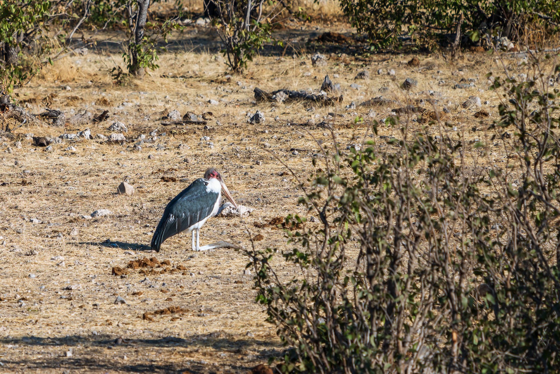 Rano jeszcze raz wracamy do oczka wodnego. Znów szczęście nam dopisuje. Tym razem udaje się zobaczyć marabuta afrykańskiego (z rodziny bocianów), dzięki czemu zaliczamy brzydką piątkę – tzw. „ugly 5”. Pakujemy samochód i jedziemy w kierunku ostatniego campingu – Okaukuejo Camp.