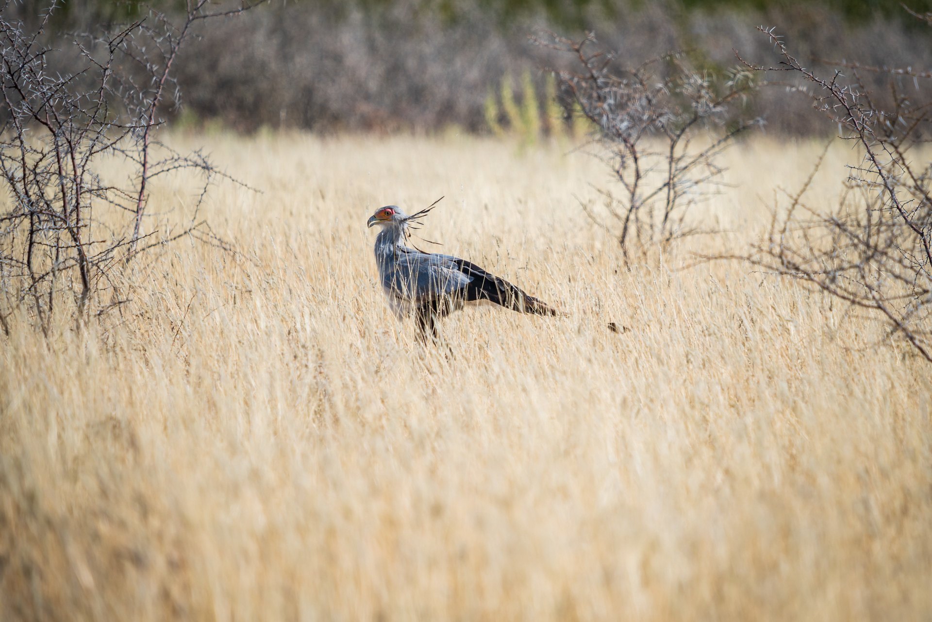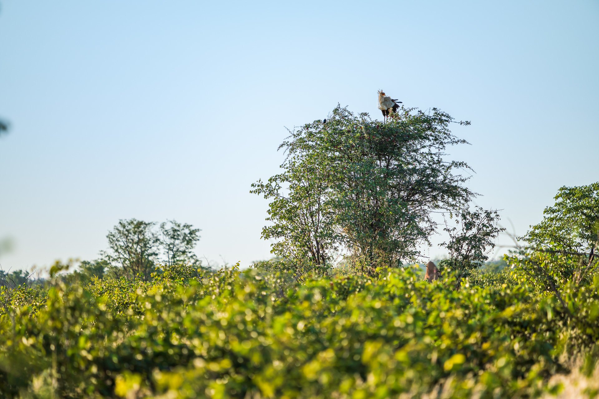 Warto też obserwować korony drzewa, bo siedzi tam sporo ptaków łownych, czasami tuż przy drodze. Opłaca się też patrzeć po wysokich trawach, bo tam też czasami można coś wypatrzeć, np. ptaka sekretarza!