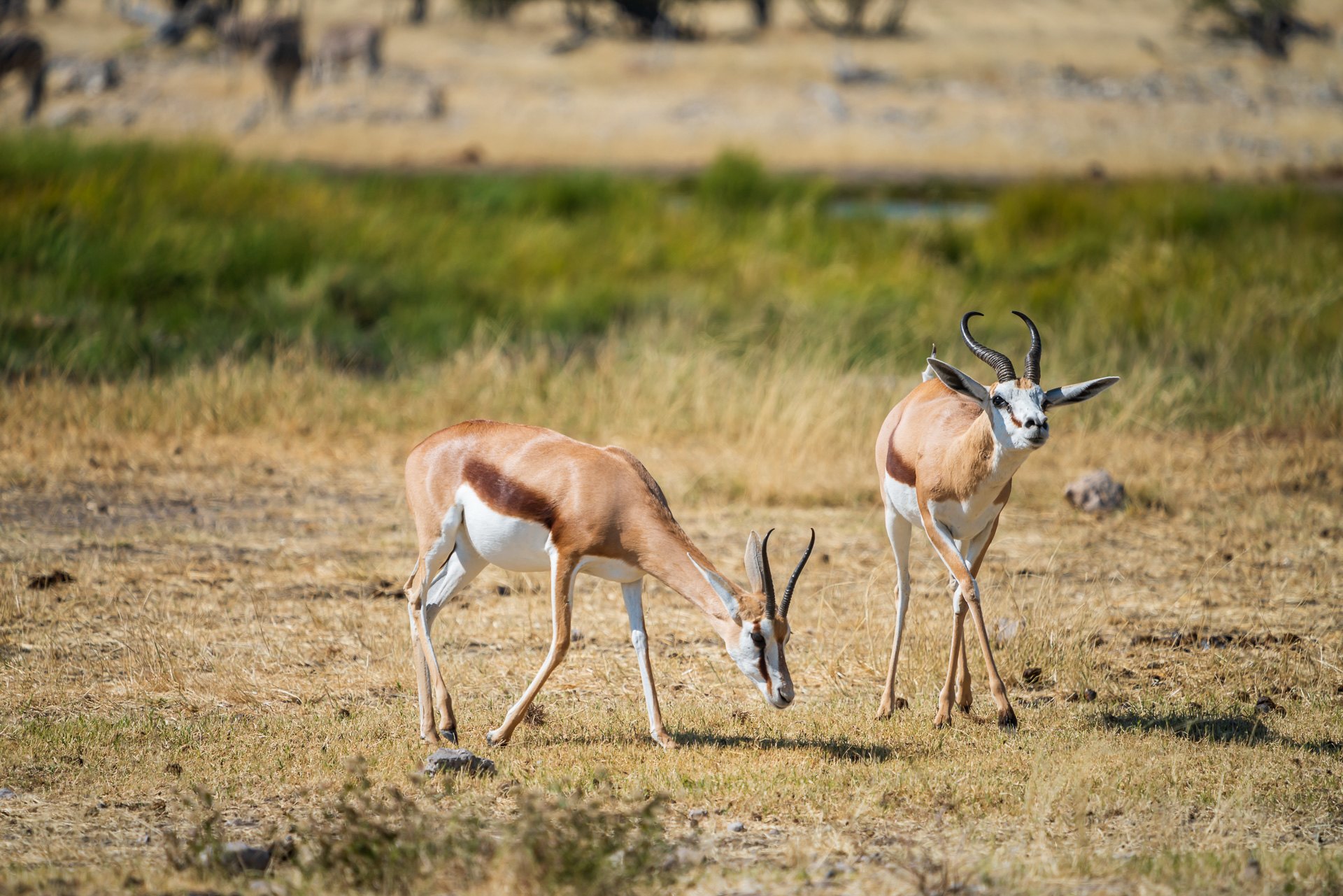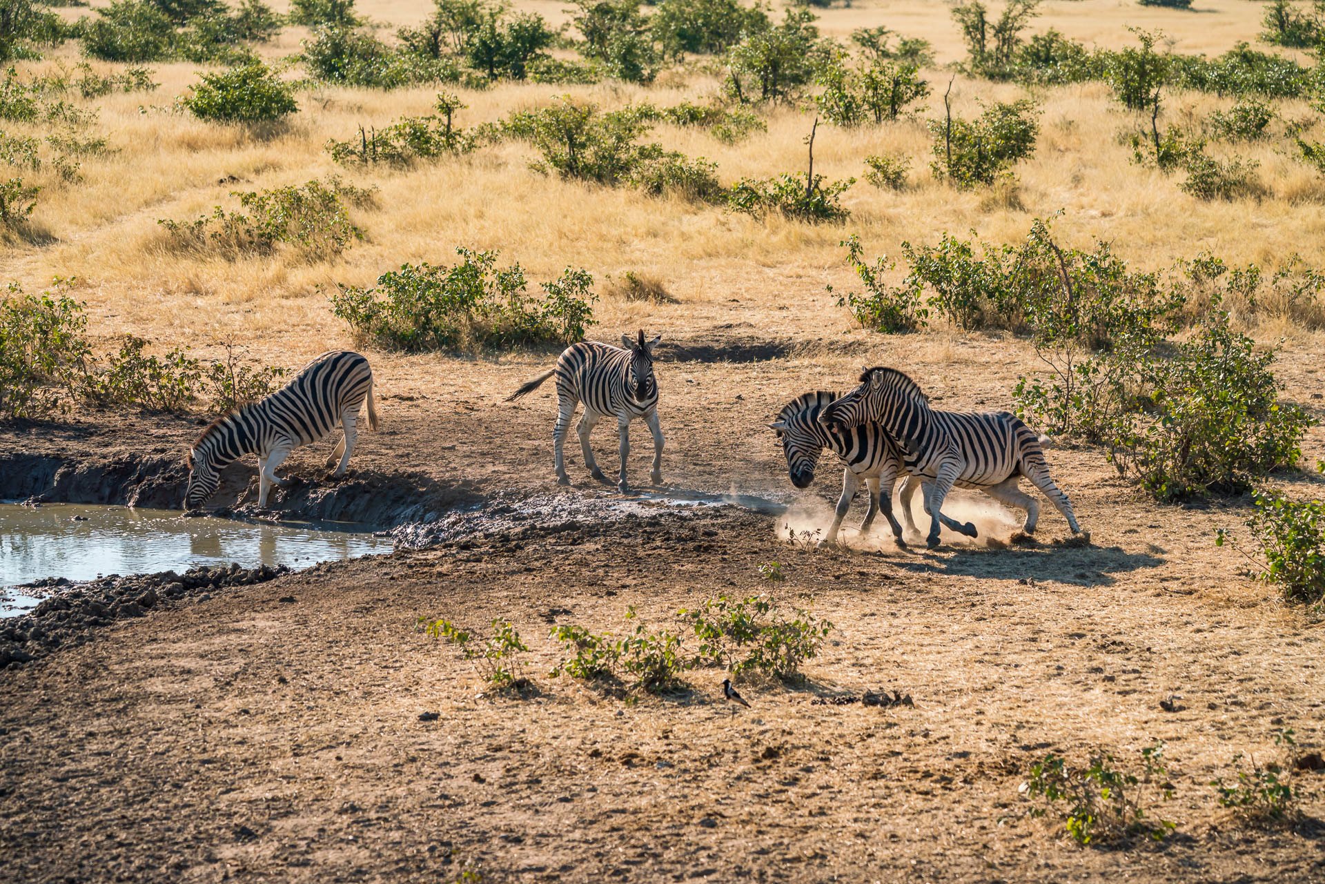 Generalnie są tutaj 2 rodzaje wodopojów – naturalne i te zrobione przez człowieka. Te naturalne o tej porze roku są w większości wyschnięte, ale naszym zdaniem i tak warto tam podjechać. Zwykle są po prostu puste, ale przy dwóch spotykamy ptaki i ssaki, których nie widzieliśmy nigdzie indziej.